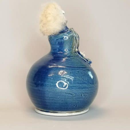 Wheel thrown and altered Stoneware figure incorporating a wick and stone oil light. combination high fire glaze with oxide and brushed colour decoration, fired in reduction atmosphere.